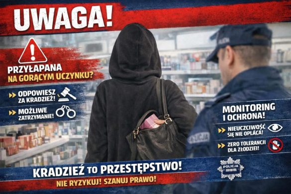 Jak ustalili funkcjonariusze, nie było to jej pierwsze tego typu zdarzenie. Zgromadzony materiał dowodowy, w tym nagrania z monitoringu, wskazuje, że kobieta dokonywała kradzieży od 23 października do 12 grudnia 2025 roku. Wykorzystywała nieuwagę pracowników, zabierała towar ze sklepu i opuszczała go bez uiszczenia należności.