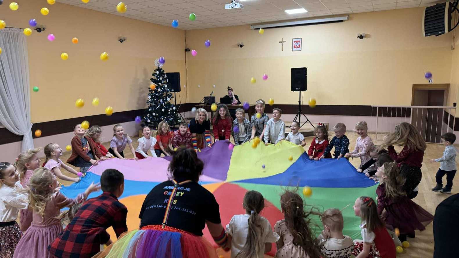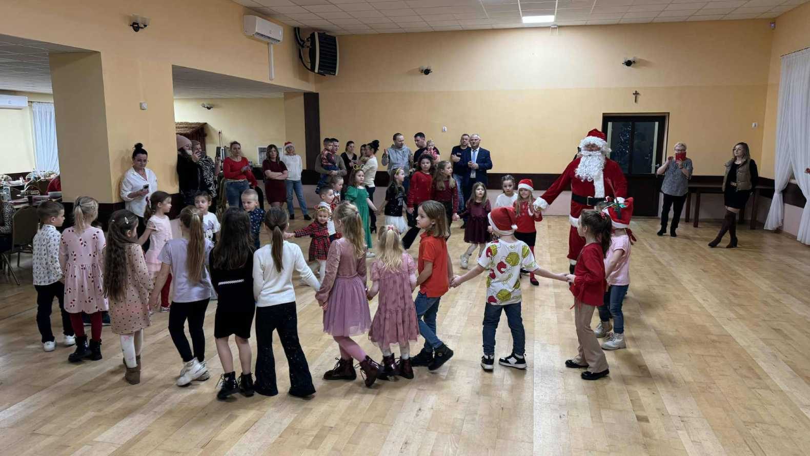Na najmłodszych czekały animacje ufundowane przez Koło Gospodyń Wiejskich, które od pierwszych chwil wciągnęły dzieci do wspólnej zabawy. Muzyczny klimat zapewniła niezastąpiona DJ Ania, dbając o to, aby na parkiecie nie zabrakło energii i radosnych rytmów. Kulminacyjnym momentem spotkania było pojawienie się Mikołaja, które wywołało prawdziwą eksplozję radości i entuzjazmu wśród dzieci.