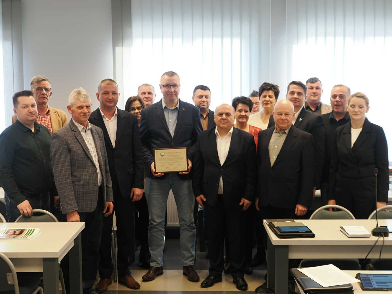 Sesja była również okazją do powitania nowego komendanta komisariatu w Dobrej – kom. Roberta Węsa. Radni złożyli komendantowi życzenia powodzenia w nowej roli oraz dobrej współpracy z lokalną społecznością i władzami gminy.