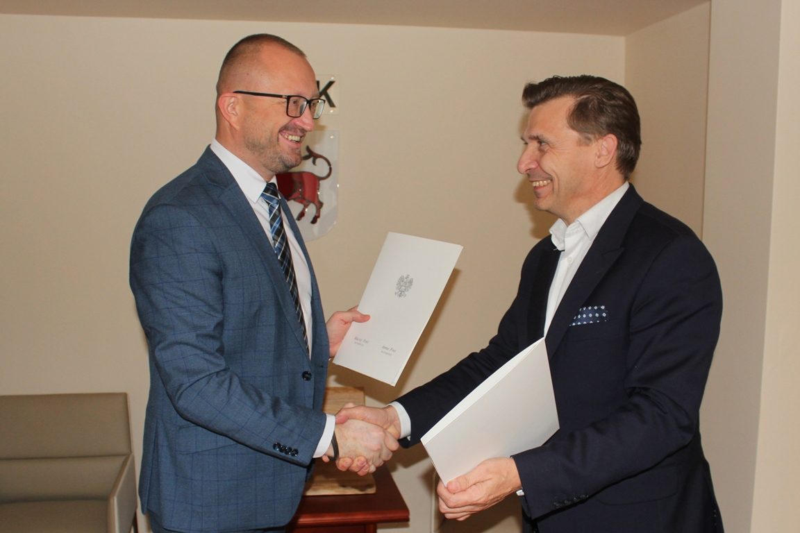 Dzisiaj Burmistrz Miasta Turku Romuald Antosik podpisał ze Starostą Kaliskim Janem Kłyszem i wicestarostą Pawłem Kaletą stateczny akt notarialny dotyczący zakupu działki po dawnej kolejce wąskotorowej.
