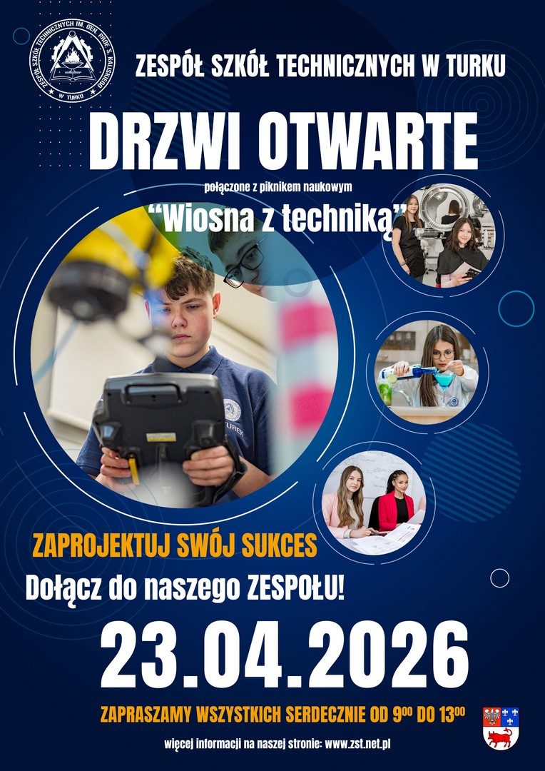 Dzień później, 23 kwietnia, swoje drzwi otworzy Zespół Szkół Technicznych w Turku. Wydarzenie odbędzie się w godzinach 9.00–11.00 i połączone zostanie z piknikiem naukowym „Wiosna z techniką”.