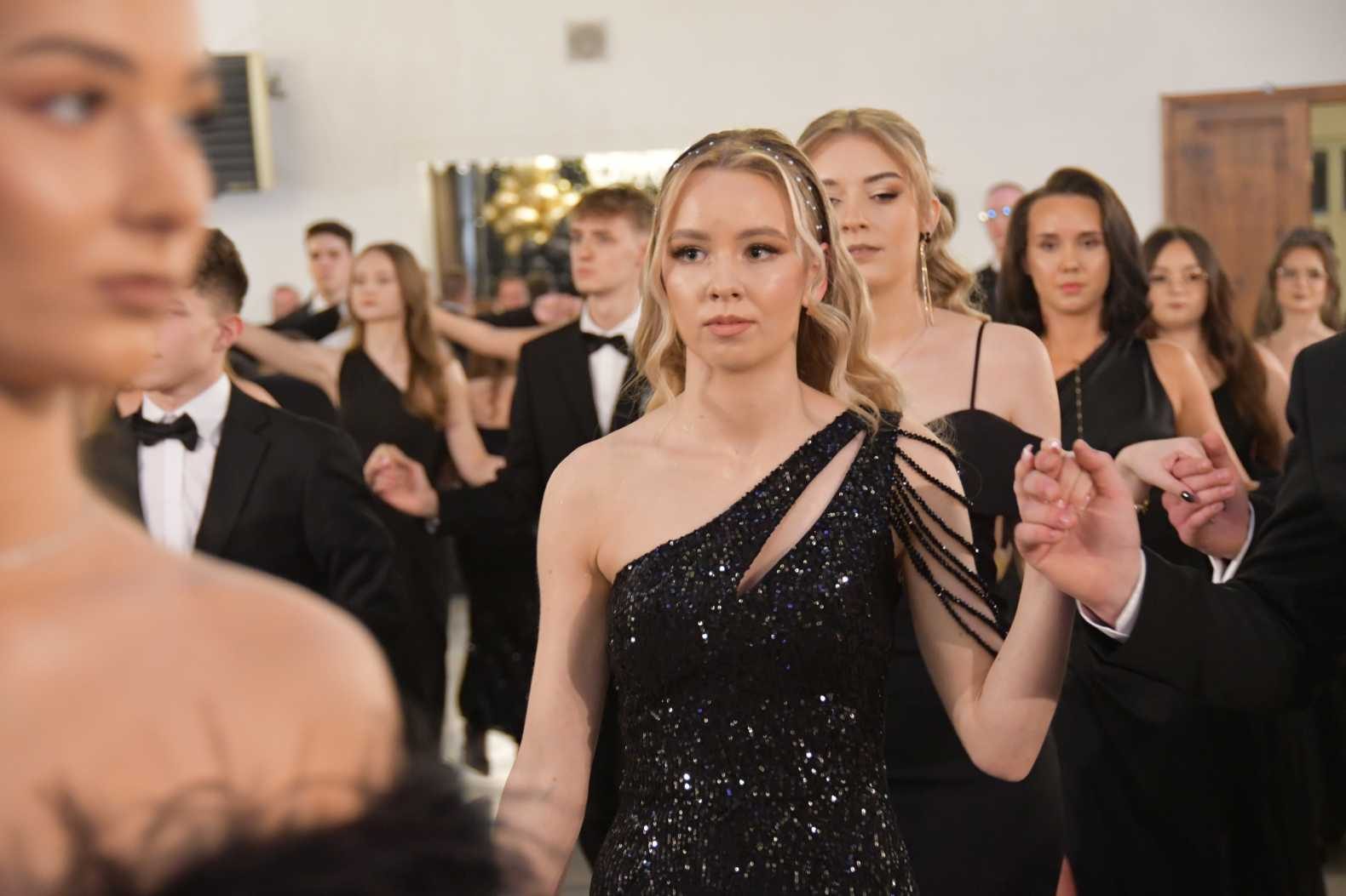 Po części oficjalnej nadeszła długo oczekiwana przez wszystkich chwila. W głośnikach zabrzmiała melodia poloneza Wojciecha Kilara z filmu „Pan Tadeusz”. 44 pary wypełniły parkiet, zachwycając zgromadzonych gości swoją gracją, wdziękiem i doskonałym przygotowaniem.