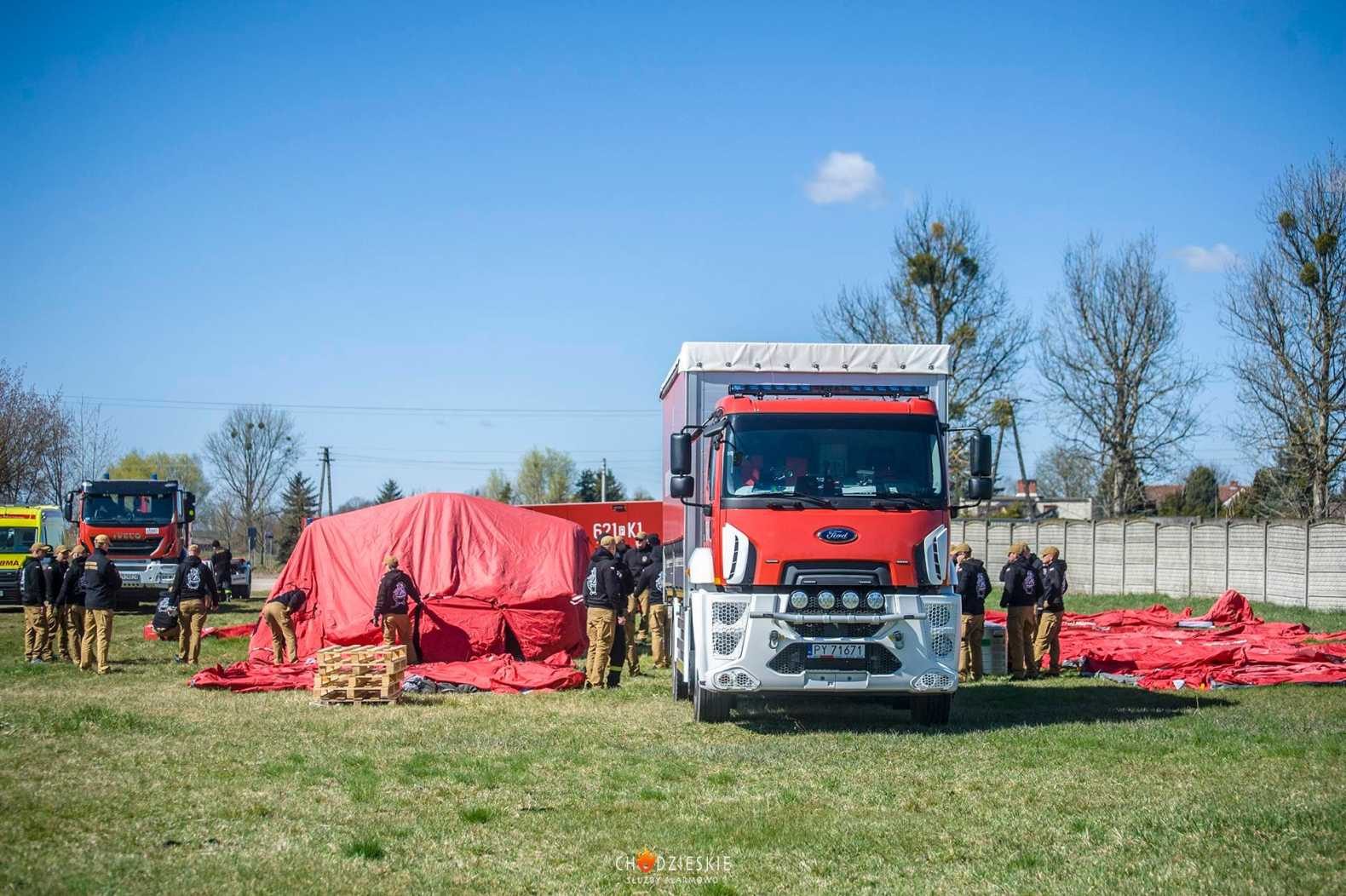 Ćwiczenia rozpoczęły się od odprawy oraz szczegółowego sprawdzenia dokumentacji i sprzętu w Komendzie Powiatowej Państwowej Straży Pożarnej w Chodzieży. Procedury te są niezbędne zwłaszcza w kontekście działań poza granicami kraju, do których przygotowywany jest moduł GFFF. Następnie uczestnicy przemieścili się do Stróżewa, gdzie przy miejscowej remizie Ochotniczej Straży Pożarnej rozpoczęto budowę bazy operacyjnej.